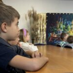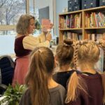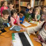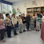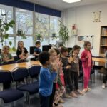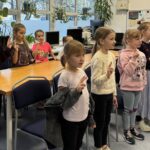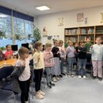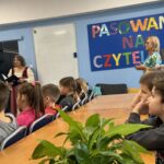 Pani bibliotekarka serdecznie przywitała wszystkich i opowiedziała, jak należy dbać o książki 📖🧹. Pani Agnieszka wyjaśniła, że w bibliotece powinniśmy być cicho 🤫, aby nie przeszkadzać innym czytelnikom i że książki po skończeniu zawsze należy odkładać na miejsce 📚📥.