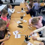 Następnie przyszedł czas na przysięgę 📜✋. Uczniowie, z powagą i w pełnym skupieniu, obiecali szanować książki, zawsze odnosić je w odpowiednim stanie i korzystać z nich mądrze 🤓📗. Wszyscy złożyli uroczystą przysięgę, po czym zostali oficjalnie pasowani na czytelników! 🎓📚 Każde dziecko otrzymało piękną książkę oraz kolorowankę 📙🎁. Każdy pierwszoklasista otrzymał również swoją własną Legitymację Czytelnika!🎉📖 Na legitymacji znajduje się specjalna Przysięga Czytelnika 📜✨, którą każdy pierwszoklasista zobowiązuje się wypełniać. Dzięki niej może oficjalnie wypożyczać książki z biblioteki i odkrywać świat pełen przygód, wiedzy i magii! Mali czytelnicy otrzymali również drewniane zakładki do książek, które samodzielnie udekorowali. Każda zakładka była bardzo wyjątkowa i niepowtarzalna.