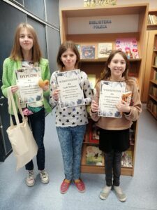 Przed feriami zostały wręczone nagrody dla naszych cudownych uczniów za udział w konkursie „Plakat i hasło promujące bibliotekę szkolną”.